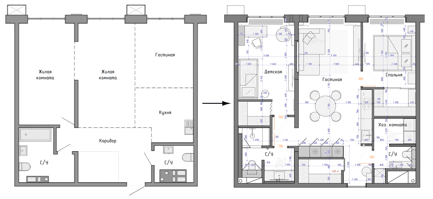 Дизайн-проект квартиры 80 кв.м. в Хабаровске